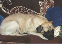 The links below tell the stories of seven Mastiffs who graced our lives for several years (it used to be three, then four, then six, but another has joined the crew at the Bridge). Each had his or her own distinct personality, and was loved in his or her own way. They gave us all they had, and we miss them all dearly. As you can see in the "rest of the story," the pain of losing these four wonderful companions was blunted by the addition of a couple of Mastiffs (eventually three) who came to us straight from the Almighty, or so it seems. Their coming into our lives was a wonderful blessing, as long as it lasted...